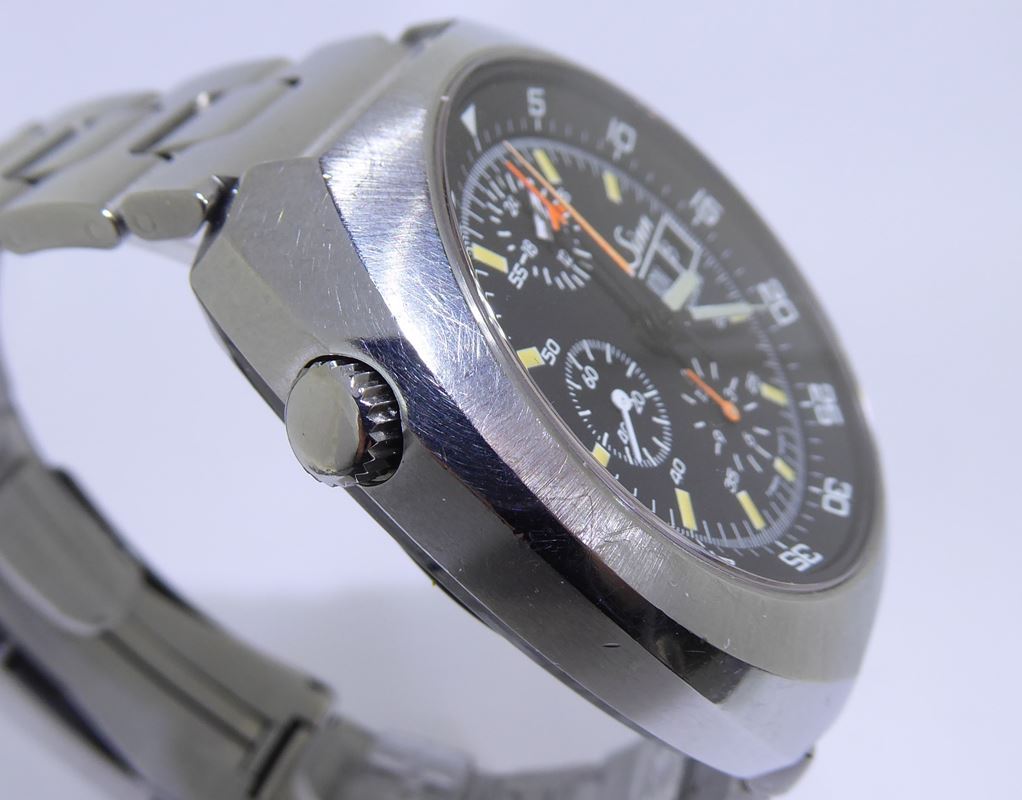 Das Modell war bei dem Weltraumflug 1981 der Spacelab-Mission D1 dabei und hat sehr gute Dienste dabei geleistet. Das vorliegende Modell ist noch mit dem Lemania 5100 ausgestattet. Eine Revision ist hier zu empfehlen. Band und Gehäuse sind benutzt, aber nicht übertrieben mit Abnutzung oder Kratzern behaftet.xial-Hemmung.
