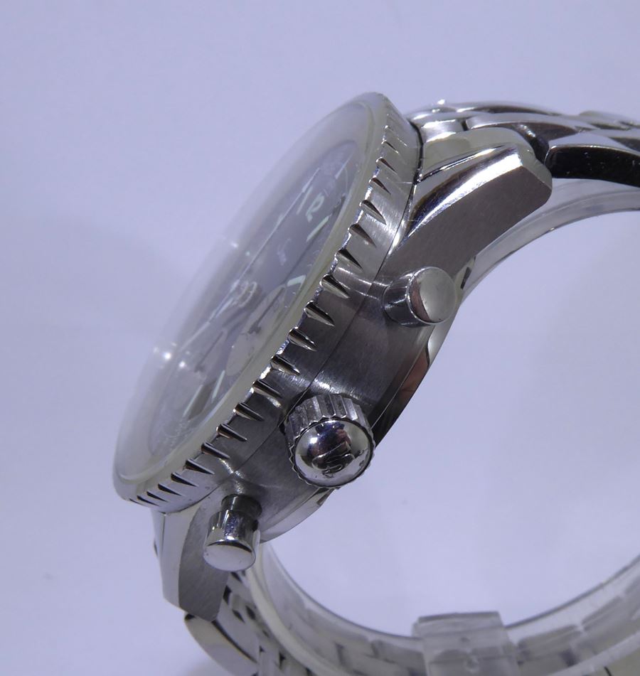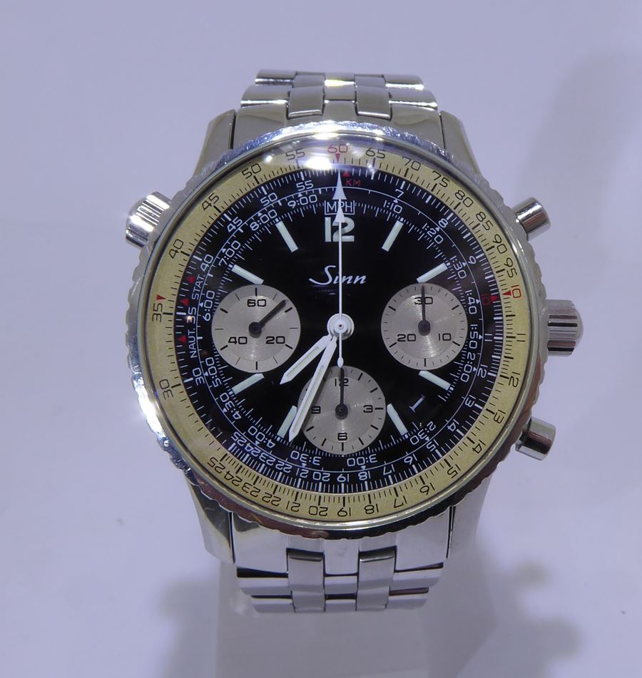 Die Sinn 903 zählt zu den Klassikern aus dem Hause. Das Zifferblatt mit dem integrierten Rechenschieber ist legendär. Ein Glasboden ermöglicht den Blick in die Technikabteilung, trotzallem ist die Uhr für 10 bar abgedichtet. Das vorliegende Modell ist mit dem feingliedrigen Originalstahlband mit integrierter Faltschließe versehen..